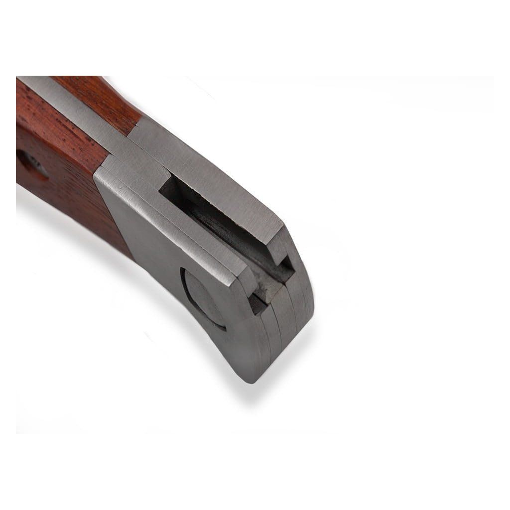 Pohodlná rukojeť z oceli a dřeva perfektně padne do ruky.