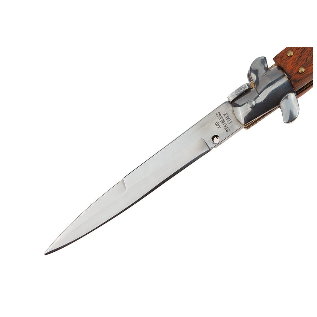 Italský pružinový nůž má tenkou čepel s hrotem kopí vyrobený z vysoce kvalitní nerezové oceli 440 .
