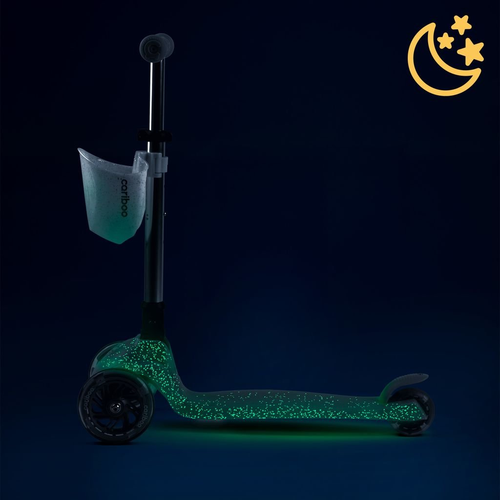 Vypadá to jako kouzlo? Svítící deska koloběžky Ghost je výsledkem fosforescence. Během dne deska absorbuje světlo a po setmění ho vyzařuje v podobě jemné, nazelenalé záře. Pro dítě je to kouzlo, pro rodiče chytrý způsob, jak zkrotit tmu a probudit zvědavost o světě. Nejsou potřeba žádné baterie ani kabely – jen trochu světla a chvilka trpělivosti. Ideální kombinace zábavy a objevování fungování okolního světa – zejména když padne tma.