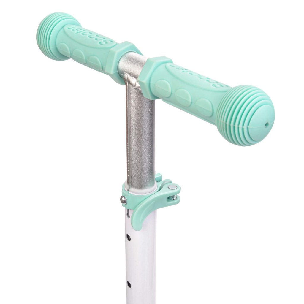 Řídítka typu T-bar s gumovými úchyty zajišťují kontrolu nad vozidlem a pohodlný úchop. Měkký povrch rukojetí chrání před otlaky a odřeninami na rukou. Řídítka lze snadno demontovat pomocí jediného tlačítka, díky čemuž je koloběžka kompaktní a snadno přepravitelná. Její výšku lze nastavit ve 4 polohách v rozmezí: 60/65/70/75 cm, což umožňuje snadné přizpůsobení koloběžky výšce dítěte.