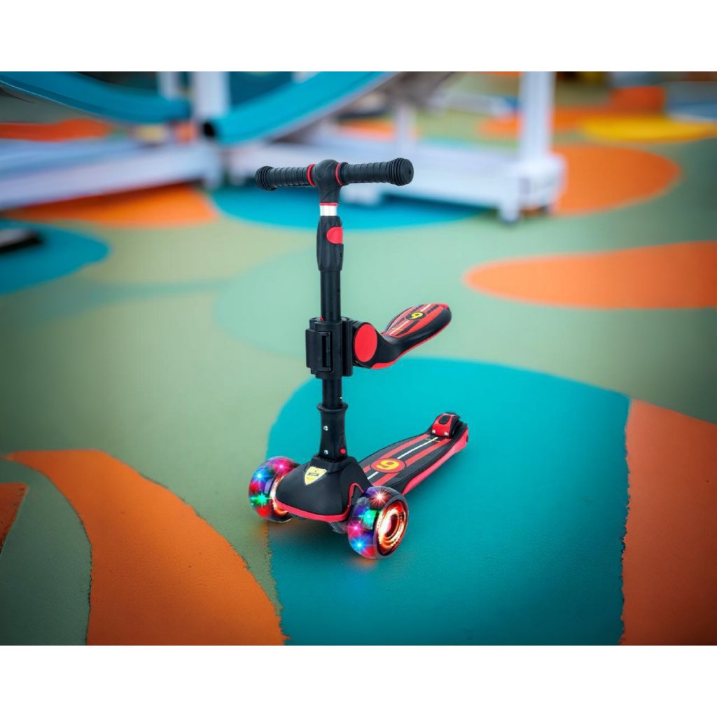 Dětská tříkolová koloběžka Story 2v1 Deluxe se svítícími kolečky mini scooter, černo-červená