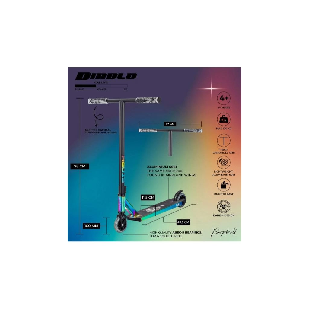 Freestyle koloběžka Story Diablo je lehká koloběžka, která je dobrou volbou pro začátečníky, kteří hledají snadný start!