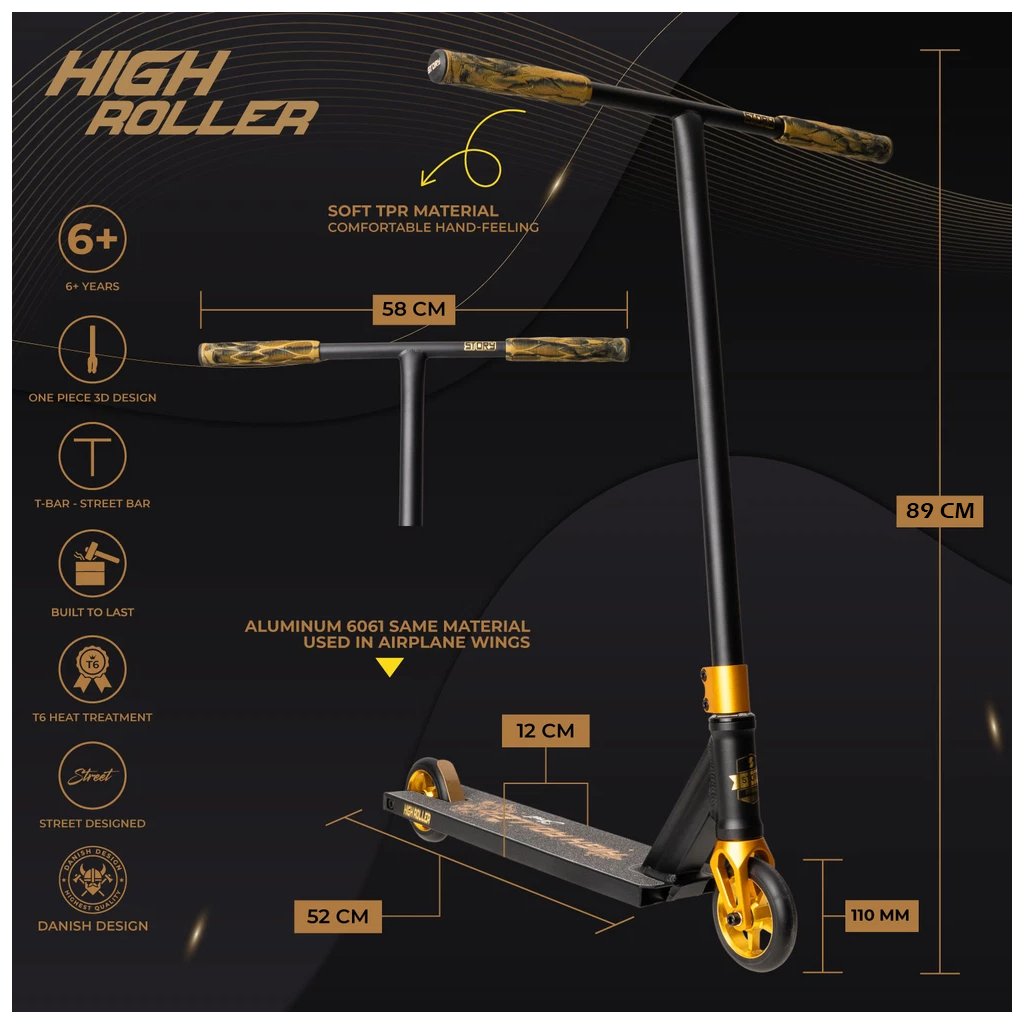 Freestyle koloběžka Story High Roller Stunt, Černo-zlatá
