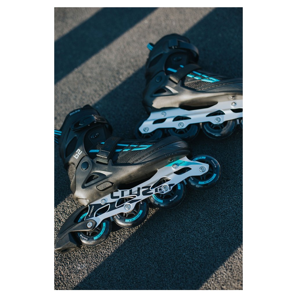 HLINÍKOVÉ LYŽINY. Inline skluznice Movino Cruzer B2 je vyrobena z kvalitní hliníkové slitiny, díky čemuž je lehká a stabilní a navíc skvěle pohlcuje vibrace a nerovnosti. Hliníkové lyžiny se vyznačují vysokou pevností a odolností.