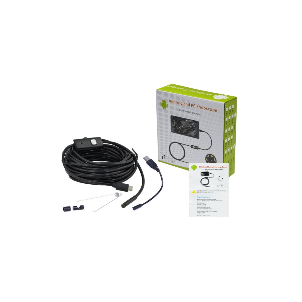 Inovativní endoskopická kamera plně vodotěsná s 6 LED diodami s nastavitelnou intenzitou světla. Má velmi flexibilní a trvanlivý kabel, špičku s magnetem, hákem nebo zrcadlem. Fotokamera má úhel pohledu 67 stupňů. Nyní už nebude filmování a živé sledování v těžko dostupných místech problémem. Díky adaptéru USB připojíte zařízení bez problému k počítači.