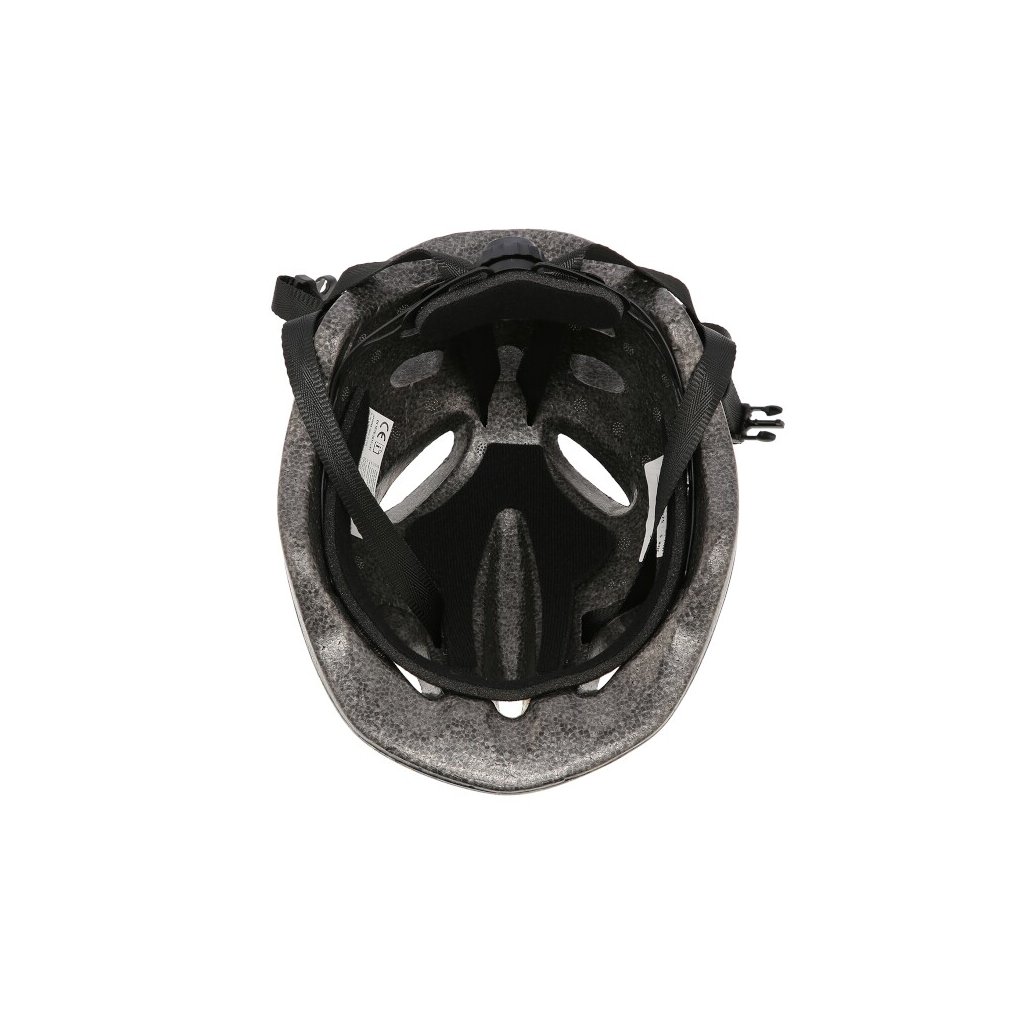 - Tento model je vyroben technologií Out-mold, kdy je vrchní kryt z PVC přilepen na nosnou část z polystyrénu. V případě nárazu se energie rozkládá do celé plochy helmy a dále se přenáší přes pěnové polštářky.