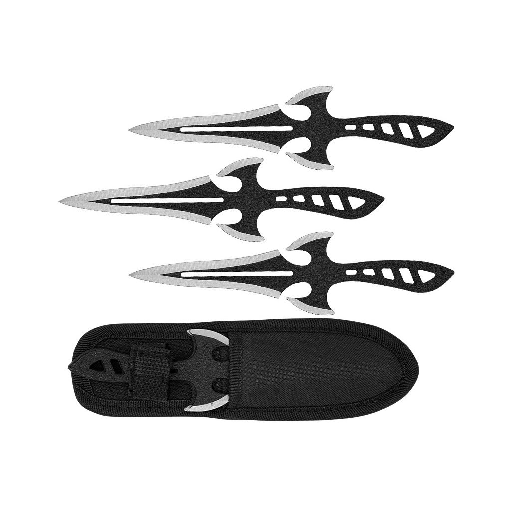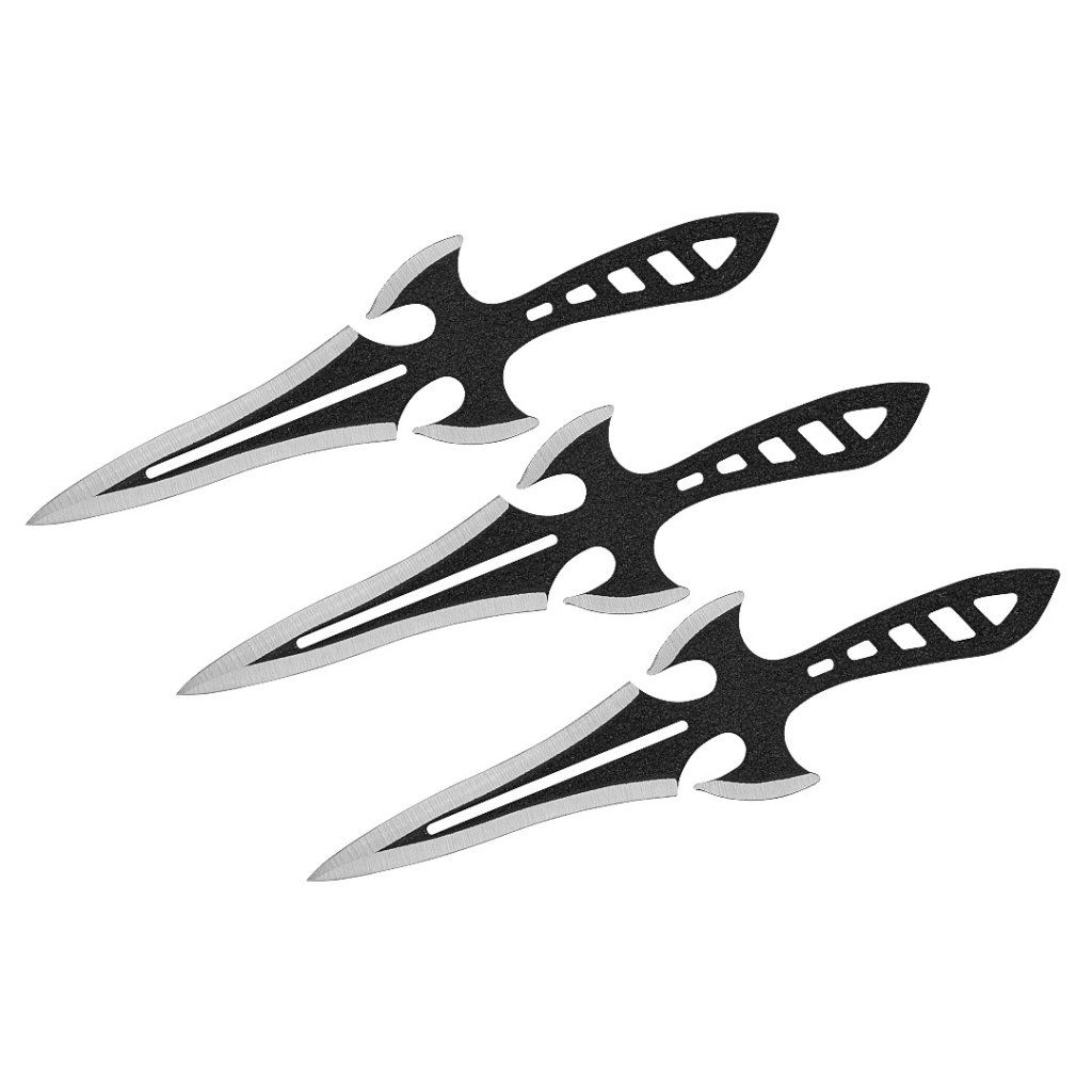 Sada tří pevných vrhacích nožů, ideální pro rozvíjení dovedností a zdokonalování přesnosti hodu.