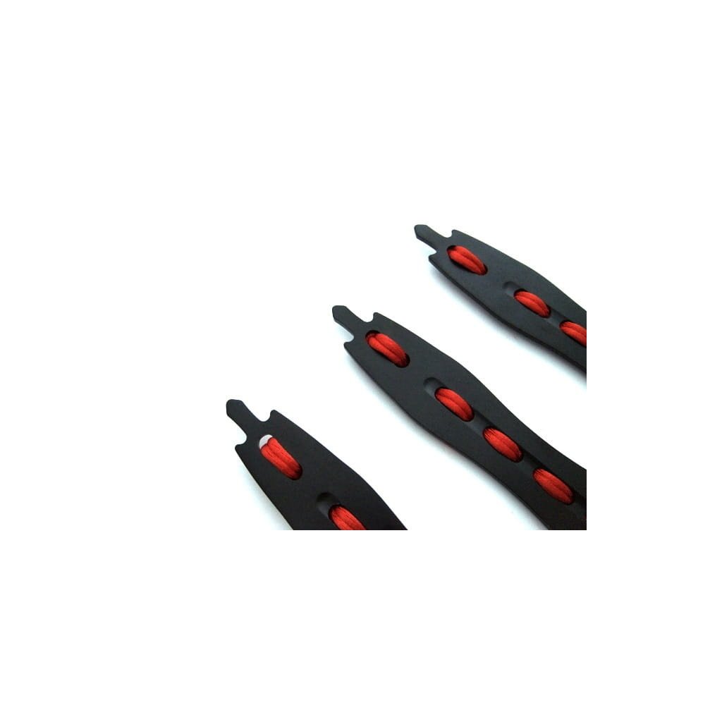 Malá rukojeť s červeným opletením skvěle padne do ruky a umožňuje přesné hody, protože zabraňuje případnému sklouznutí.