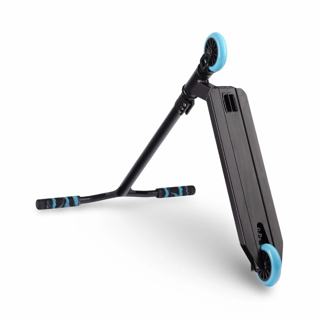 - 🦾 Svaly tam, kde jsou potřeba. Ocelová řídítka typu Y-bar a kvalitní hliníková deska se postarají o bezpečnost. Tahle koloběžka snese stovky nepovedených pokusů, než ten trik konečně trefíš čistě.