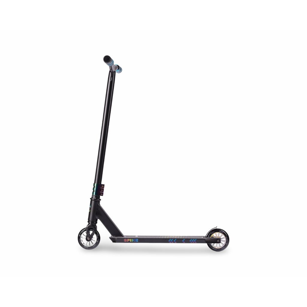 SPIKE je freestylová koloběžka pro děti, které už vědí, že jejich svět je freestyle. Chtějí hopsat, zrychlovat, zkoušet nové triky a posouvat své hranice. Koloběžka SPIKE je navržena tak, aby mladým jezdcům dodala potřebnou stabilitu, rychlost, kontrolu a podpořila přirozený progres.