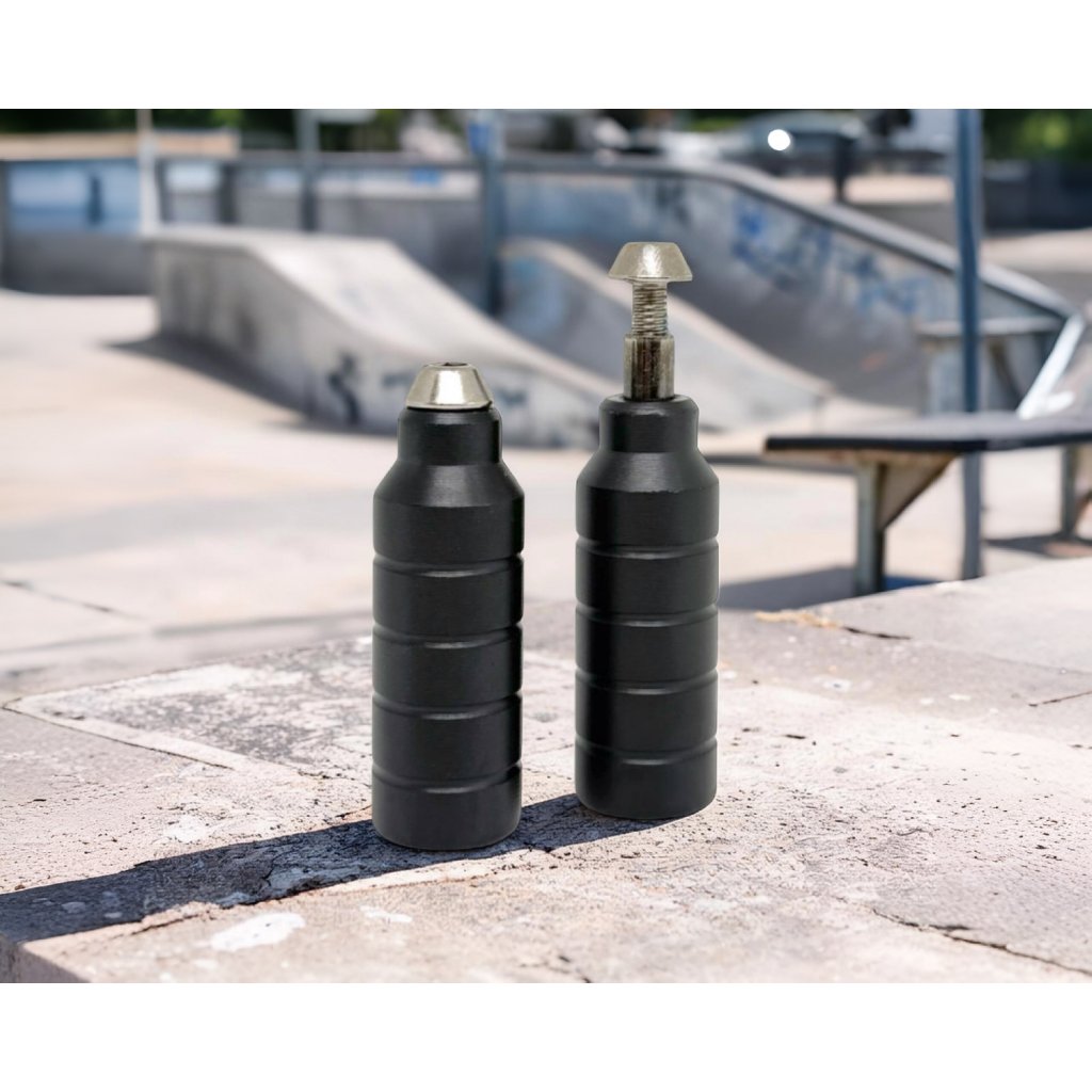 Pegy jezdcům otevírají nový svět triků. Grindování zábradlí nebo hran je součást každé streetové session a jízda tak dostává nový rozměr. Pegy jsou určeny k montáži na přední i zadní kolo. Kratší na přední kolo (délka šroubu 4,5 cm) lze montovat na jakoukoliv vidlici běžně dostupných koloběžek. Delší zadní peg (délka šroubu 6,5 cm) je vhodný pouze pro freestyle koloběžky se zúženou deskou v zadní části. Pegy jsou vyrobeny ze zpevněného hliníku, který zvládne tvrdé dopady i opakované grindy, zatímco ocelové šrouby zajistí pevné uchycení.
