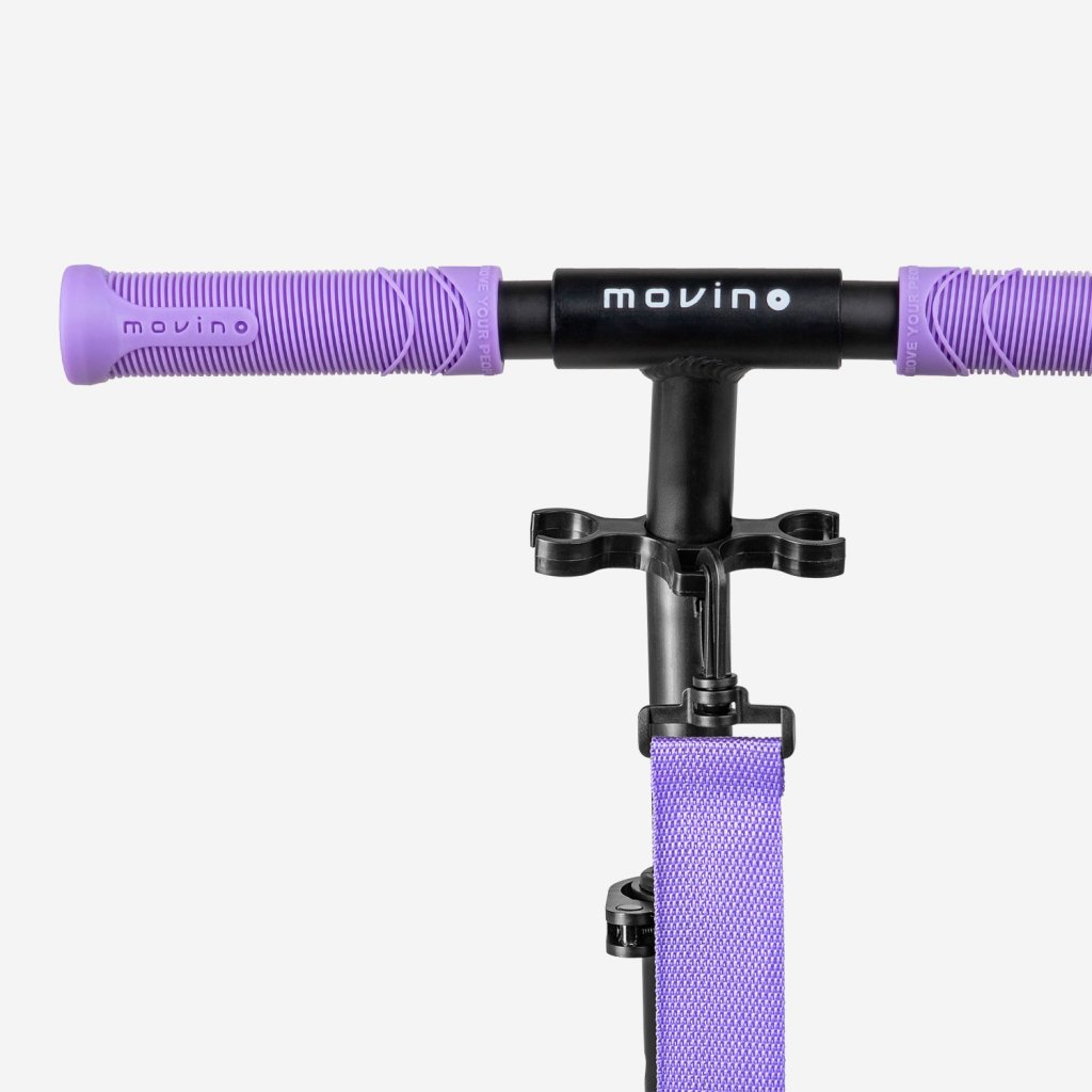 Koloběžka Movino Infinity má pohodlný přepravní popruh, který bude užitečný každý den i na cestách. Pevný úchop je základem pohodlí a bezpečnosti. Movino Infinity má pohodlné, drážkované rukojeti, které zajišťují odpovídající uchopení.