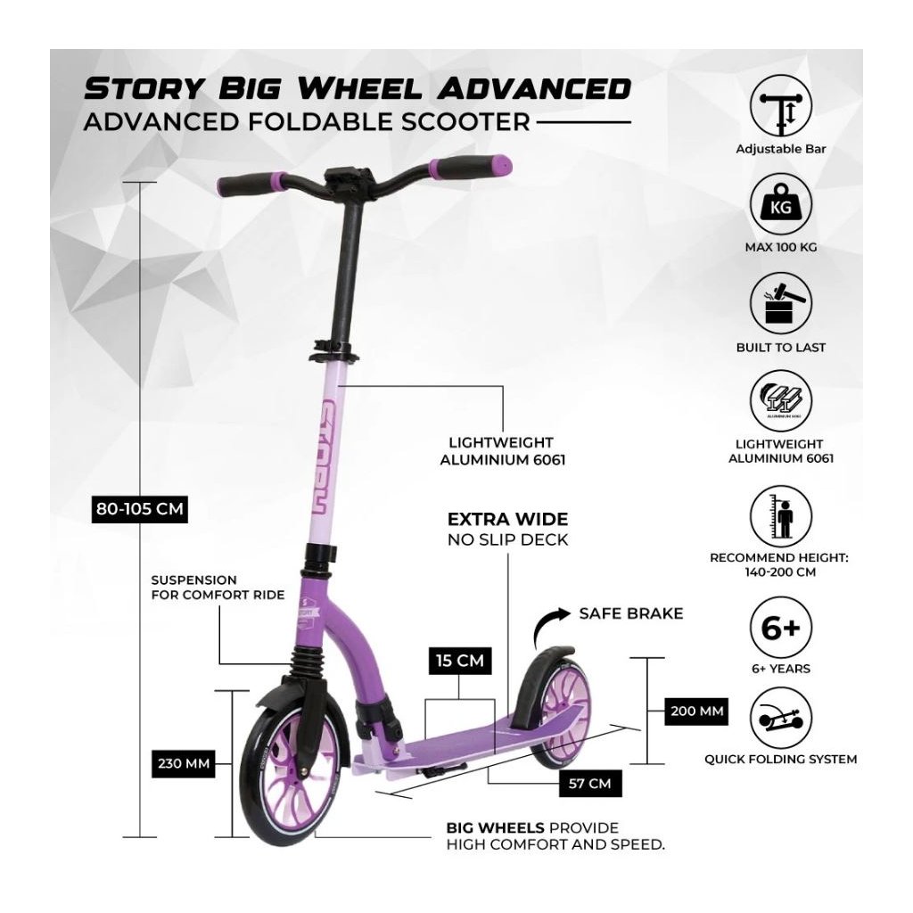 Skládací koloběžka Story Big Wheel Advanced 200mm, Fialová