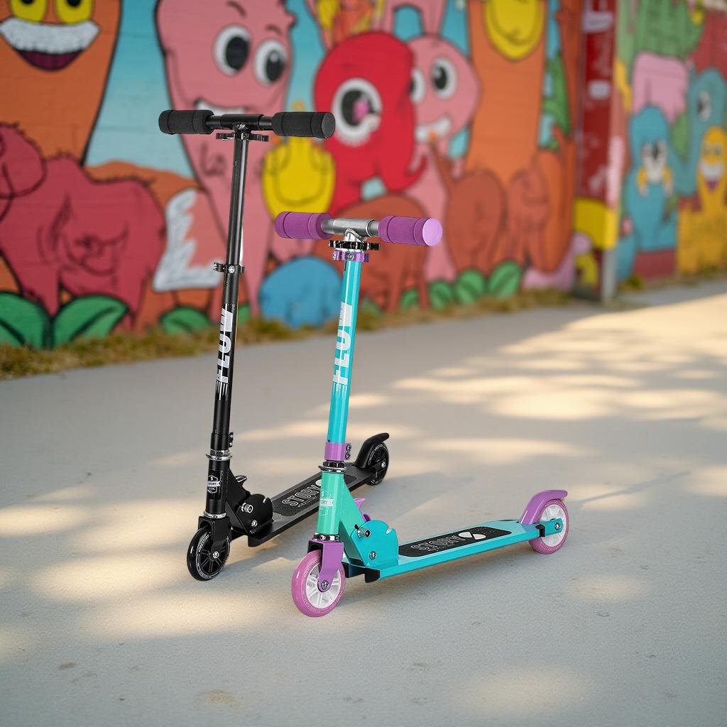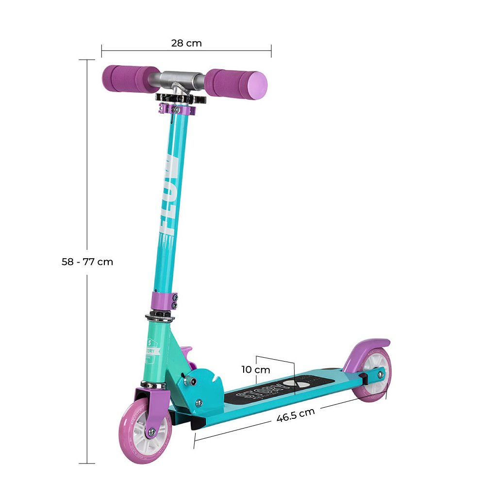 Skládací koloběžka Story Flow je ideální koloběžka pro děti ve věku mezi 3-6 roky. Pokud hledáte ideální koloběžku pro vaše dítě, na které se naučí jezdit, už hledat nemusíte. Story Flow byla navržena přesně pro tyto případy. Široká kolečka napomáhají k lepšímu udržování rovnováhy. Koloběžku lze snadno přizpůsobit různým výškám Vašich dětí, jelikož výšku tyče lze nastavit dle Vašich potřeb. Tyč jde nastavit v rozmezí od 58 - 77 cm. Zadní část desky je vybavena pružinovou brzdou.