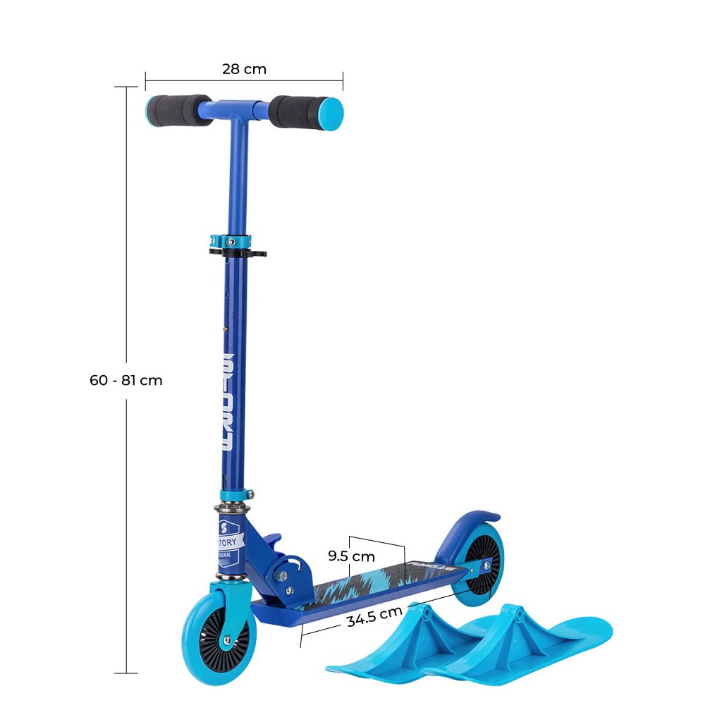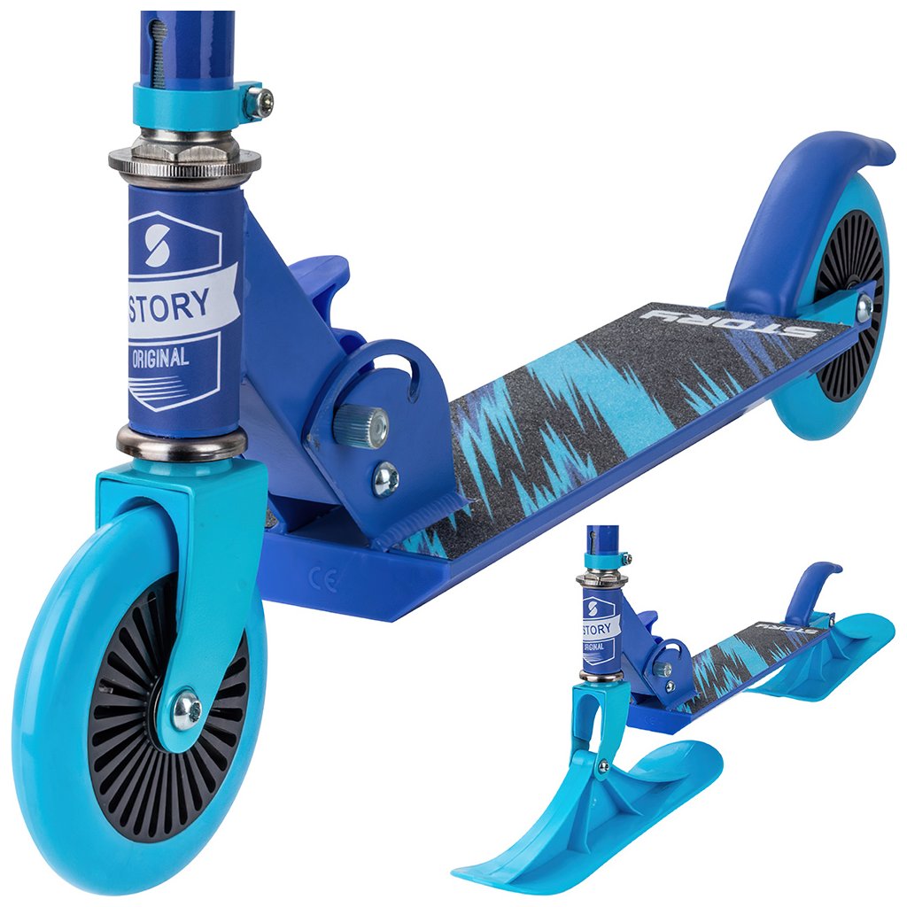 Koloběžka Story Freshie je konvertibilní, což znamená, že kola koloběžky můžete sundat a místo nich nasadit sadu lyží pomocí pouhých několika šroubů bez jakékoliv složité instalace. Díky tomu je to skvělá dětská koloběžka, kterou lze v létě používat pro jezdění a hraní v parku a v zimní sezóně se bavit na malých sjezdovkách nebo kopcích!