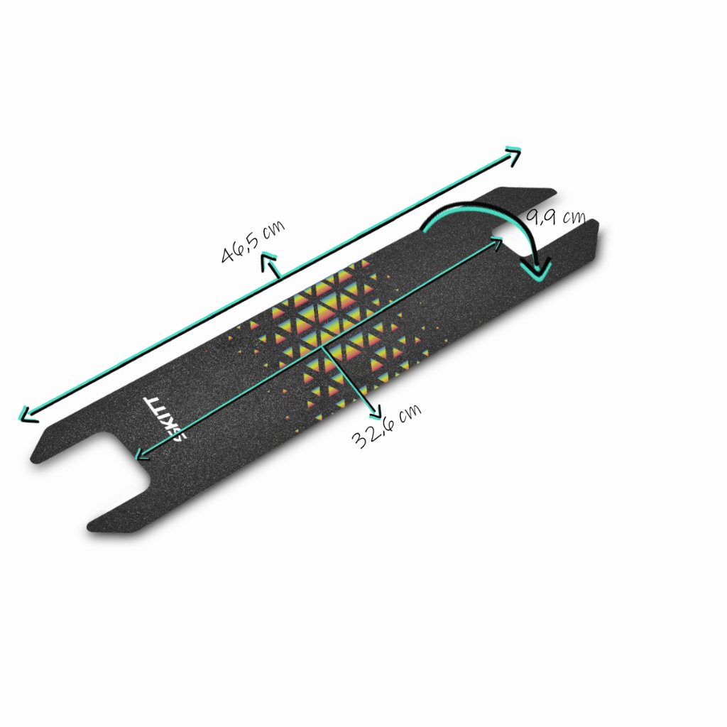 Náhradní protiskluzový griptape je na míru střižený pro Skitt freestyle koloběžku Spike. Nabízí bezpečný a protiskluzový povrch. Díky odolné zrnitosti poskytuje spolehlivou trakci pro hladké ovládání při kaskadérských kouscích i každodení jízdě.