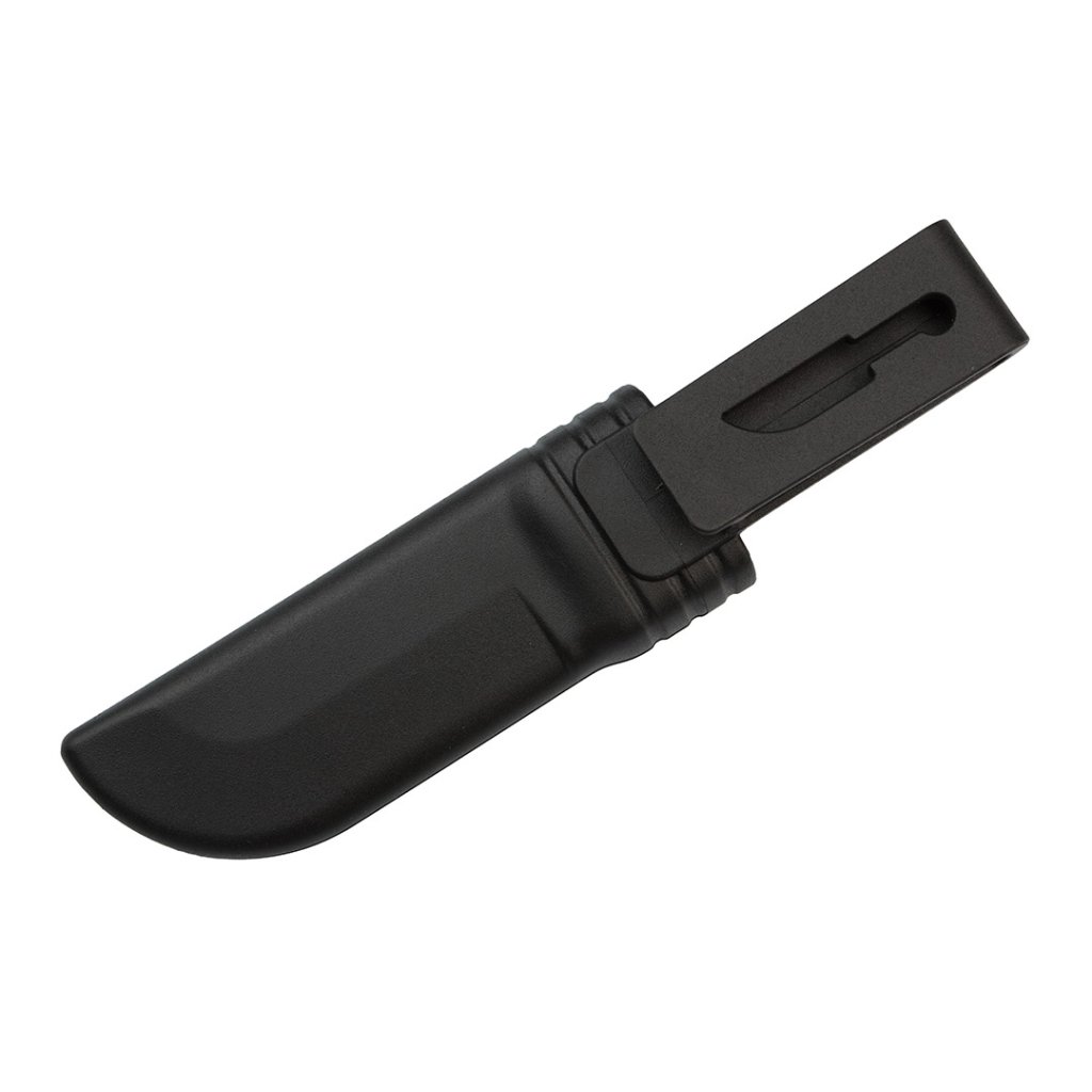 Lovecký nůž BSH ADVENTURE je dodáván s pouzdrem z odolného plastu, které lze připevnit k opasku kalhot.