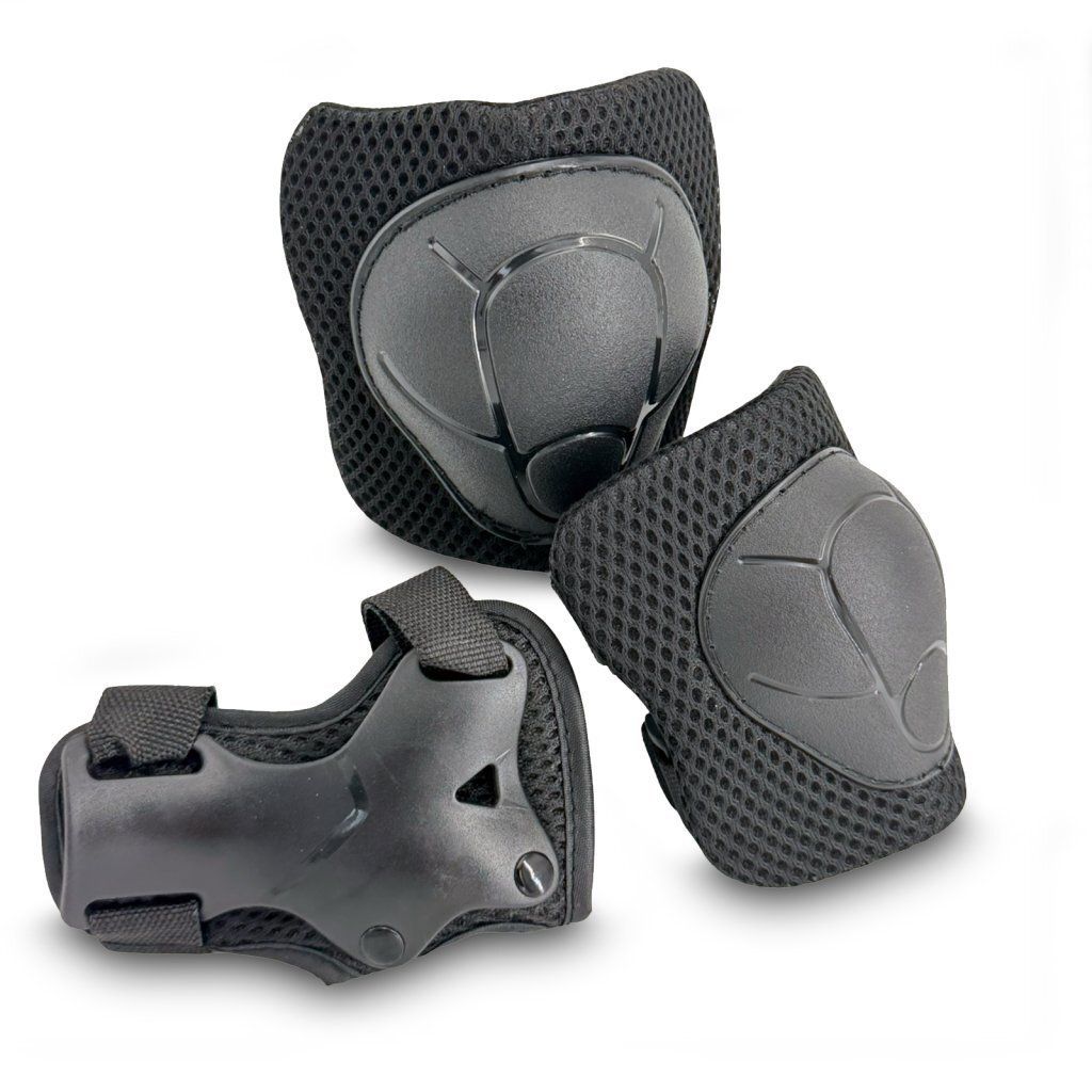 A protože začátky jsou o zkoušení nových věcí, a občas i o pádech, set doplňuje sada 6 dětských chráničů SKITT v černé barvě. Sada obsahuje – chrániče kolen, loktů a zápěstí. Pevná plastová výztuha chrání při kontaktu s povrchem, měkké polstrování zvyšuje komfort a elastické pásky se suchým zipem drží chrániče pevně na místě během jízdy.