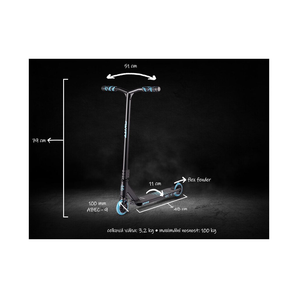 SPIKE je univerzální koloběžka. Zvládne rampy, streetové překážky, ale i běžné ježdění.