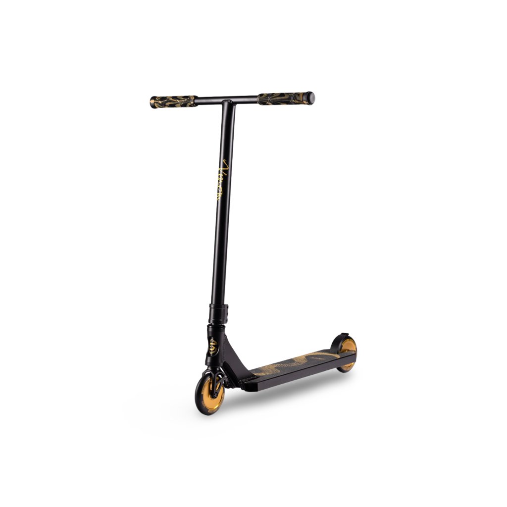 VENOM nemusí křičet, aby byl viděn – když přijde jeho chvíle, umí bezpochyby pěkně kousnout. Je to koloběžka pro jezdce, kteří milují street. Pro ty, kteří chtějí přesné dopady, rychlé reakce a design, který působí sebevědomě. VENOM je elegatní a připravený na nejtvdší tréninky. Freestyle koloběžka VENOM je stvořena pro pokročilejší a náročnější jezdce, kteří chtějí tvrdý street, čistý design a maximální kontrolu.