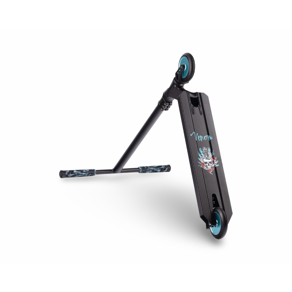 VENOM nemusí křičet, aby byl viděn – když přijde jeho chvíle, umí bezpochyby pěkně kousnout. Je to koloběžka pro jezdce, kteří milují street. Pro ty, kteří chtějí přesné dopady, rychlé reakce a design, který působí sebevědomě. VENOM je elegatní a připravený na nejtvdší tréninky. Freestyle koloběžka VENOM je stvořena pro pokročilejší a náročnější jezdce, kteří chtějí tvrdý street, čistý design a maximální kontrolu.
